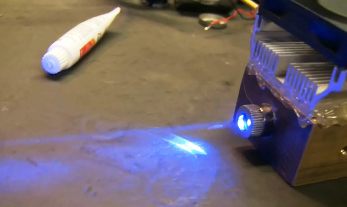 The output wattage from the laser is immensely powerful and can easily crossover the 1000mW threshold. Monitor the temperature of the voltage regulator and the laser diode casing during circuit operation and use thermal compound where necessary. It is not advisable to run the circuit for longer periods of time as it may damage the regulator IC.