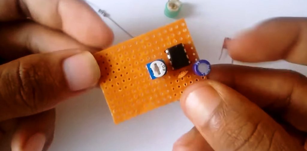 2) After that, Solder the fixed end of the 10K preset pot with pin 2 of the IC and the variable end with pin 3 of the IC.